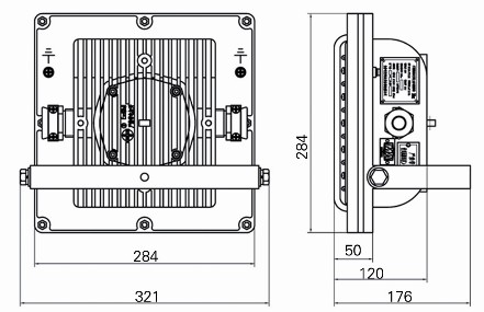該燈具配有可調(diào)安裝架和4個(gè)M8的安裝螺孔,方便用戶安裝燈具和調(diào)整照明方向、角度。